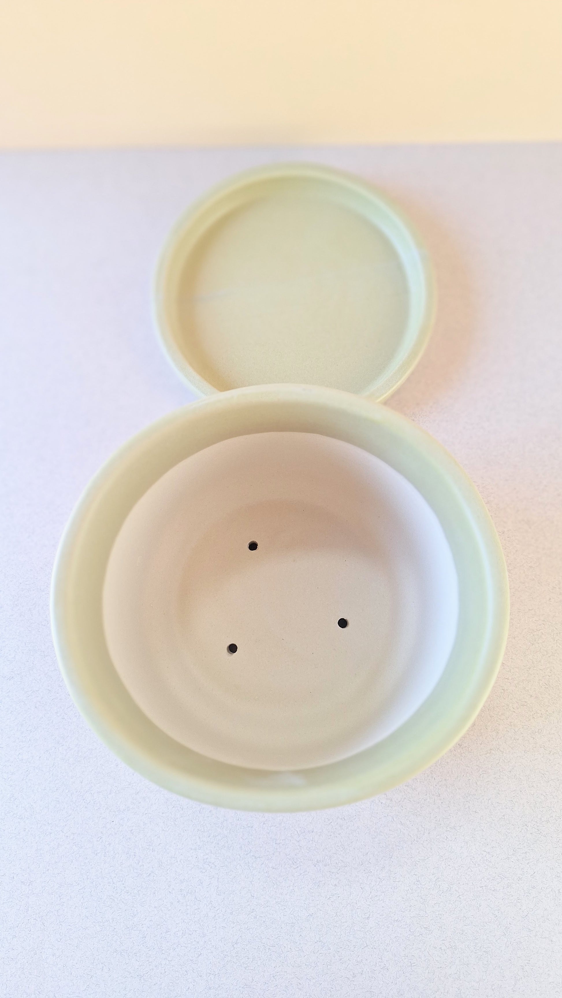 Bring a touch of modern art to your greenery with this handmade ceramic planter. Planter and dish in one colorful, sleek silhouette. Two separate pieces. Fits a drop in 4" plant pot. Recommended to water the plant in the sink to let most of the water drain out and let the dish get the last dribs and drabs. A unique piece that blends artistry with everyday living.